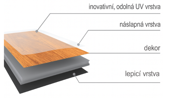 Je dostupný ve dvou variantách: lepený vinyl a klikový vinyl.